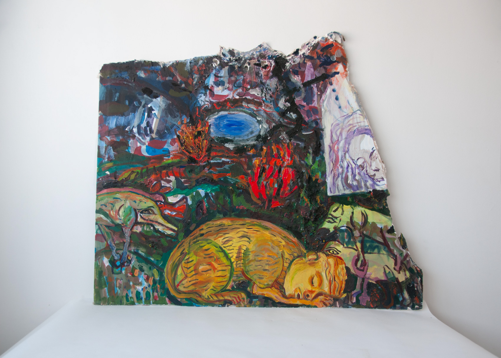 Ophelia. Oil and acrylic on broken and cut plaster board, 110x80 cm, 2024