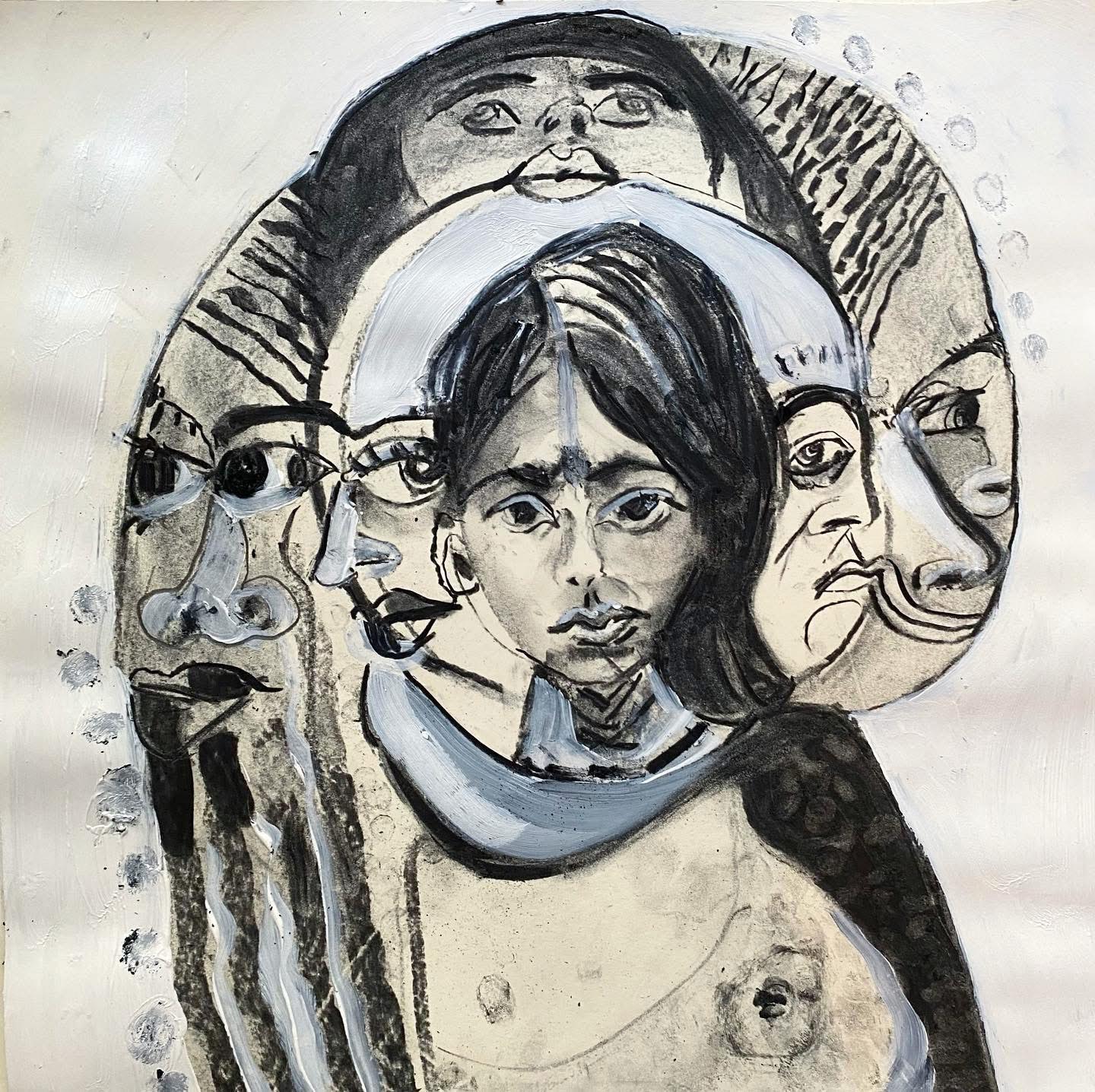 Untitled. Charcoal and acrylic on paper, 50X35 cm, 2022-3